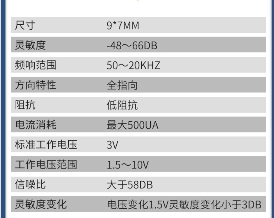 我手上有兩種咪頭, 一個大點, 一個小點, 大點的是6050P規格, 規格如下圖..