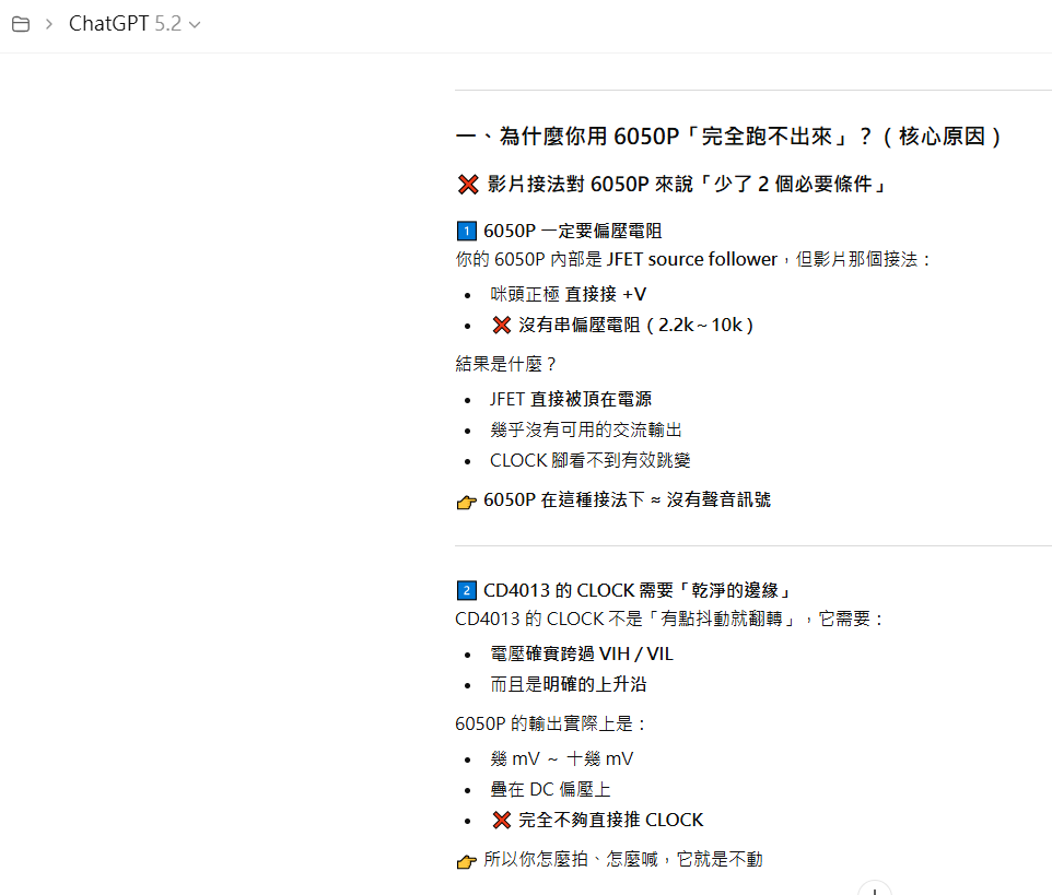 我一度還信了AI想放棄, 說我這咪頭不適合這電路, 確實它這電路很簡易, 看起來也怪怪的, 因為有點像咪頭短路了的感覺…有興趣了解可以丟這電路圖給AI看, 讓AI給你解釋, 但提醒, AI說的有時未必是真的, 它有時像算命仙, 都跟著你語氣在講話…