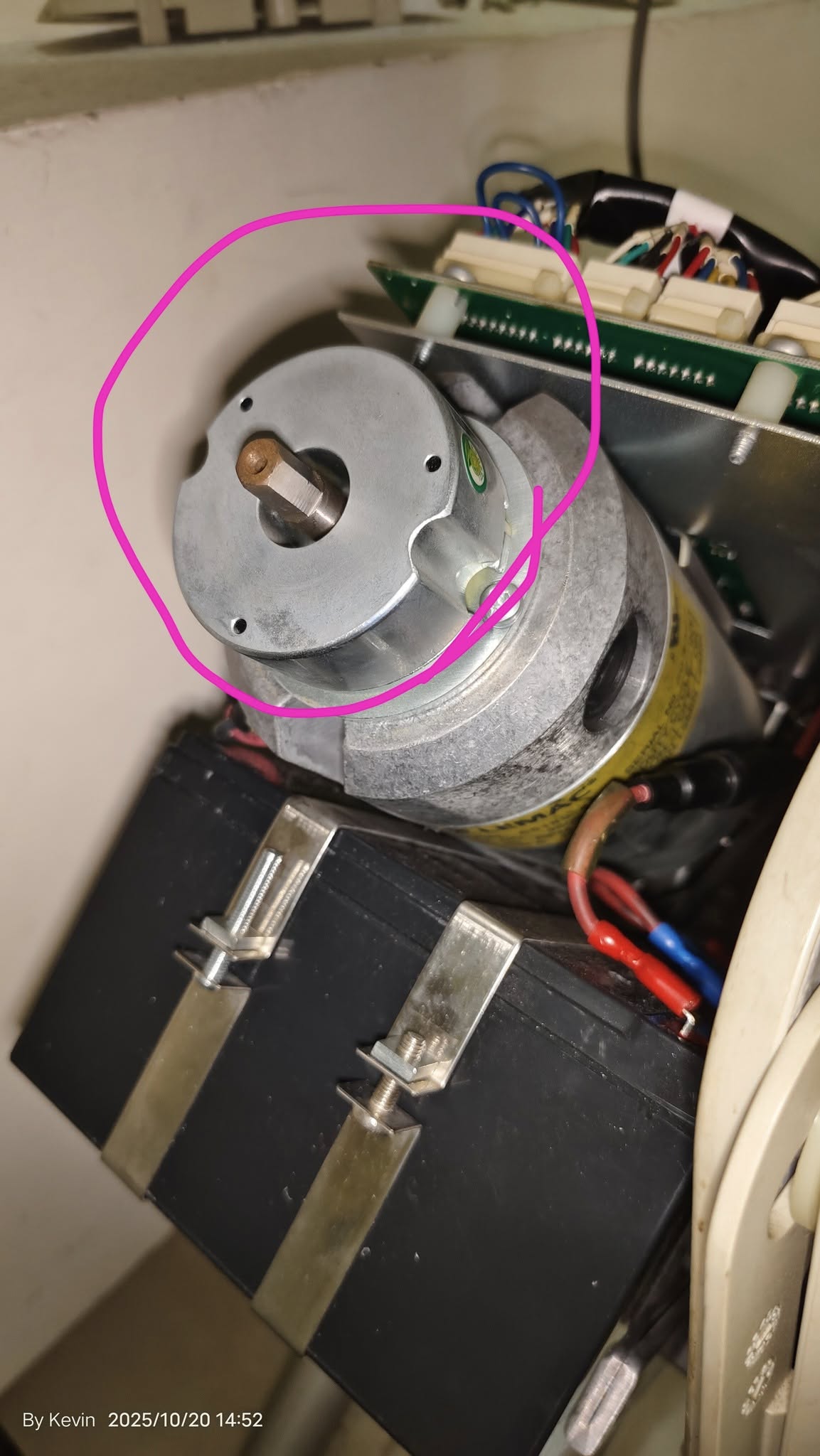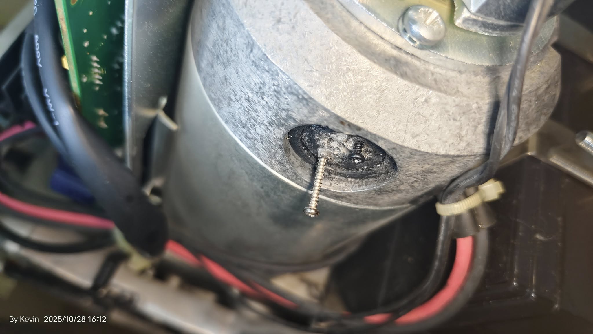 Using my circuit repair experience, I reasoned that since fuses kept blowing, there must be a short circuit downstream. Then it occurred to me – this might be a brushed motor. After years of use, could the carbon brushes be worn out? I successfully guessed the brush location: