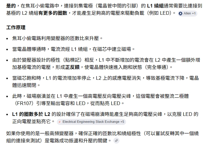 後記: 做個筆記, L1的圈數及電感值要高一點, 接在三极管集電极的L1 , 所以以我影片中, 初級繞組是L1