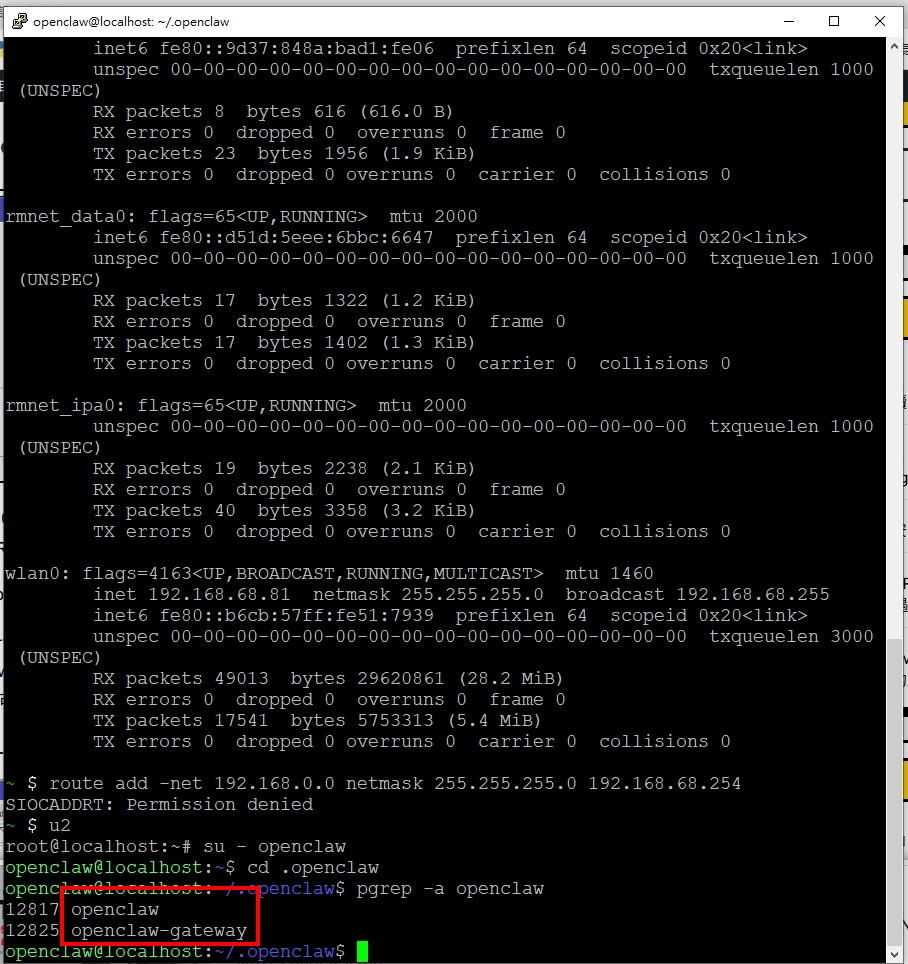 這是我手机里的網路環境, 可以清楚看到OPENCLAW GATEWAY正在背景執行…手机取得IP: 192.168.68.81