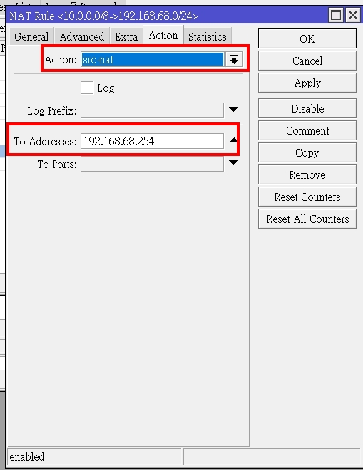 以下是最關鍵的SNAT設定, 當然兩邊的路由要各自指定好, 這個應該不用再細說, 如果這個SNAT拿掉, 遠端立馬斷線..