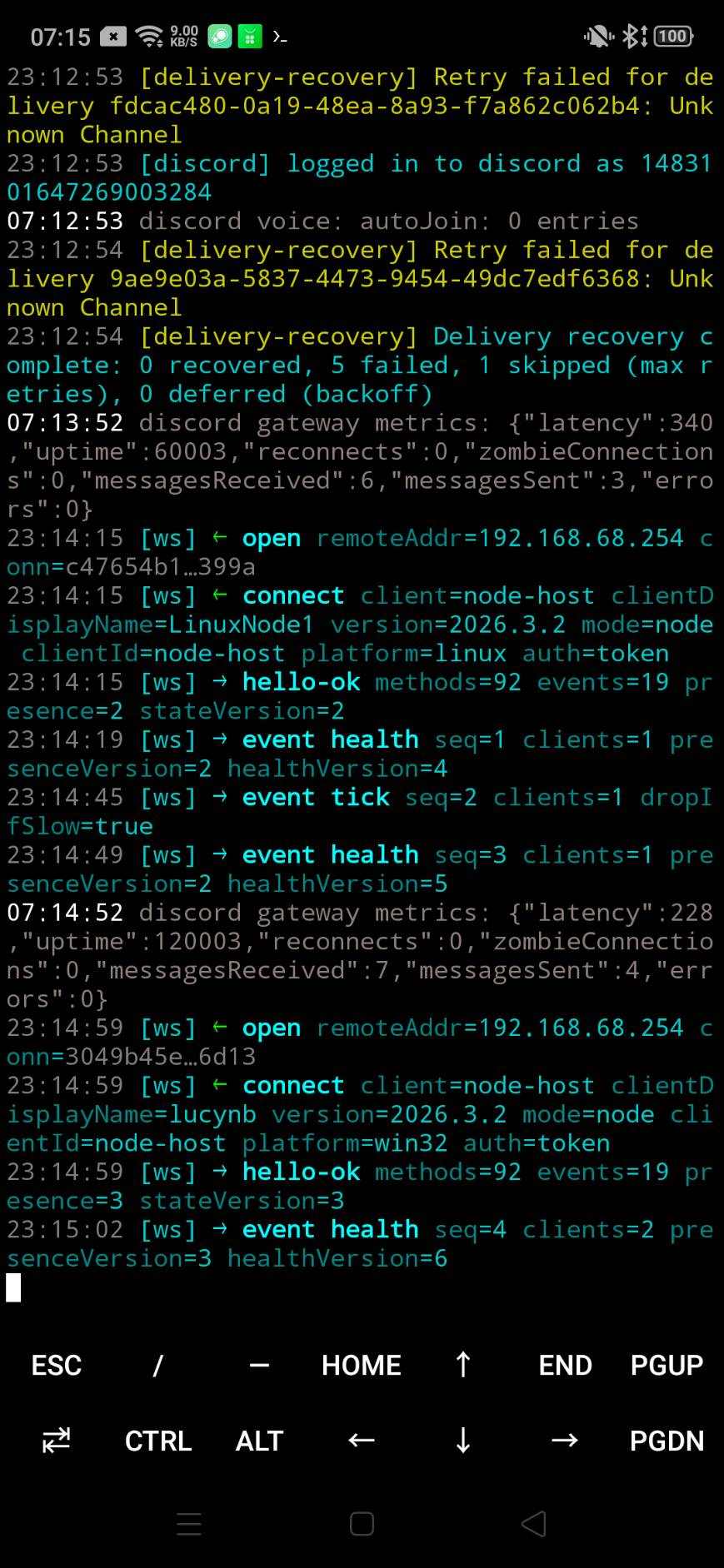 現在先看我的結果, 我在異地的一個測試環境如何連入我裝在家里手机的OPENCLAW 龍蝦環境呢?