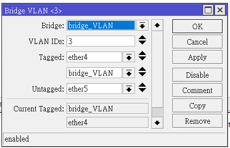 Mikrotik ROUTEROS的VLAN配置方法, 與一般標準SWITCH略有不同, 它需要建置在bridge界面上..