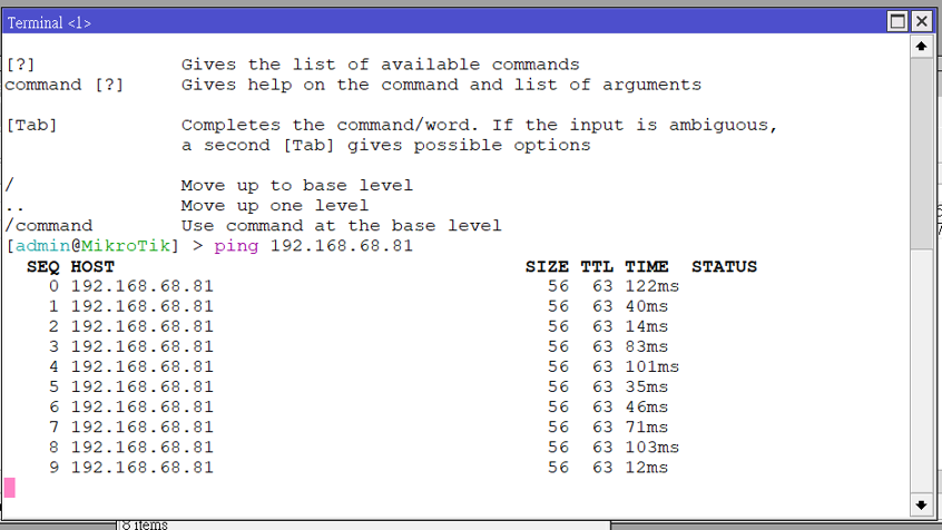 然後我們來測試, 是否能PING到VLAN 68里的一個設備, 這是我裝龍蝦的內部IP, 192.168.68.81, 它真實的連線是經由mikrotik 連到192.168.0.254 (TRUNK), 再到192.168.0.2 這里UNTAG一個VLAN ID 68的PORT, 實体線接入WIFI AP的一顆MESHED的AP網路上, 這在一樓, 而主控WIFI AP其實在3F, 所以它的路徑較遠, PING出來的值也較大.手机則是用WIFI連入.